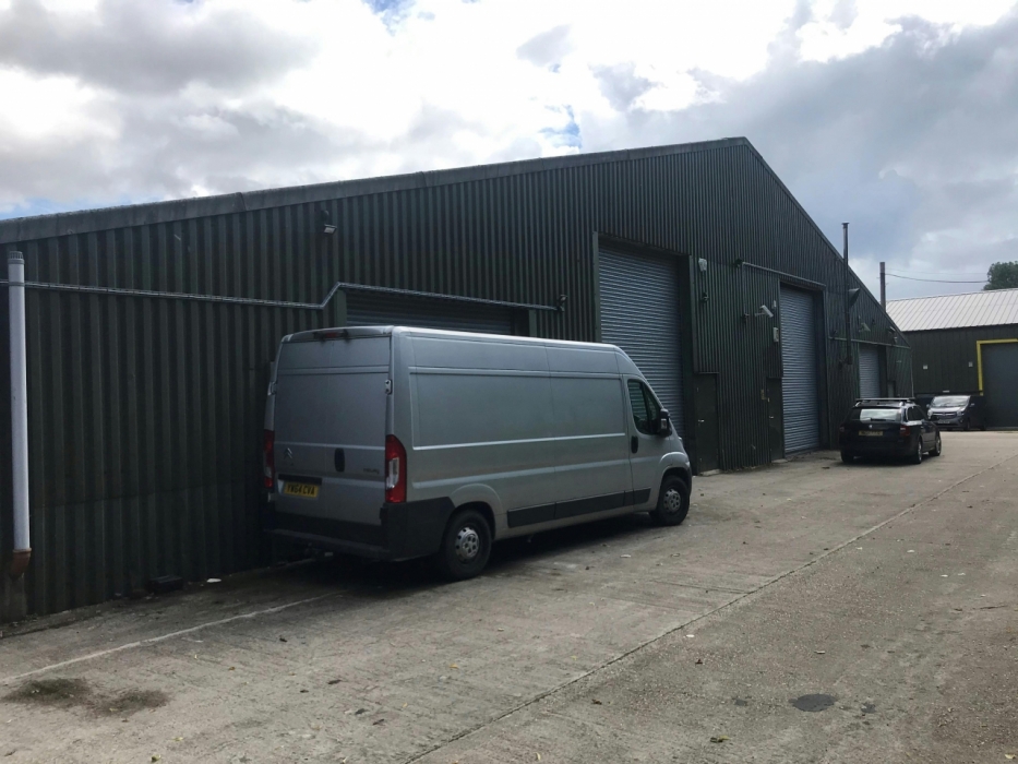 A self contained section of a steel portal frame building with high steel roller shutter door and separate steel personnel door accessing a clear span main area. There is an area of parking on concrete hardstanding. Internally the unit benefits from works office, kitchen and WC.