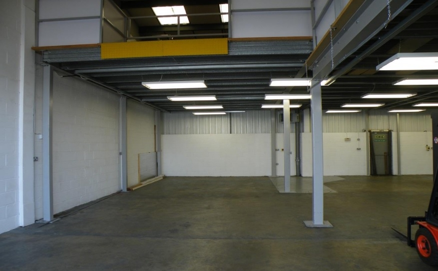 57 Tenter Road, is a modern industrial building with purpose built 2 storey office section along the front elevation and a substantial mezzanine across the entire main area other than immediately adjacent to the loading door where full height access is maintained. The mezzanine is capable of being utilised for pallet storage via fork lift gate (a fork lift truck is also available by separate negotiation). The building therefore offers very efficient use of space for companies requiring 10 ft clear height at ground floor (possibly for manufacturing or low-bay storage) in combination with open mezzanine storage/workshop above.