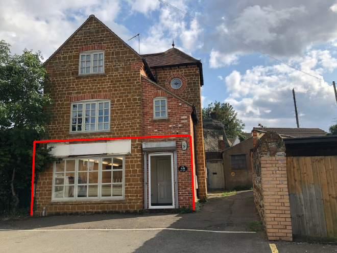 The property comprises of a ground floor retail unit/shop front office (as part of a 3-storey building) of traditional local ironstone and red brick construction underneath a pitched tiled roof.