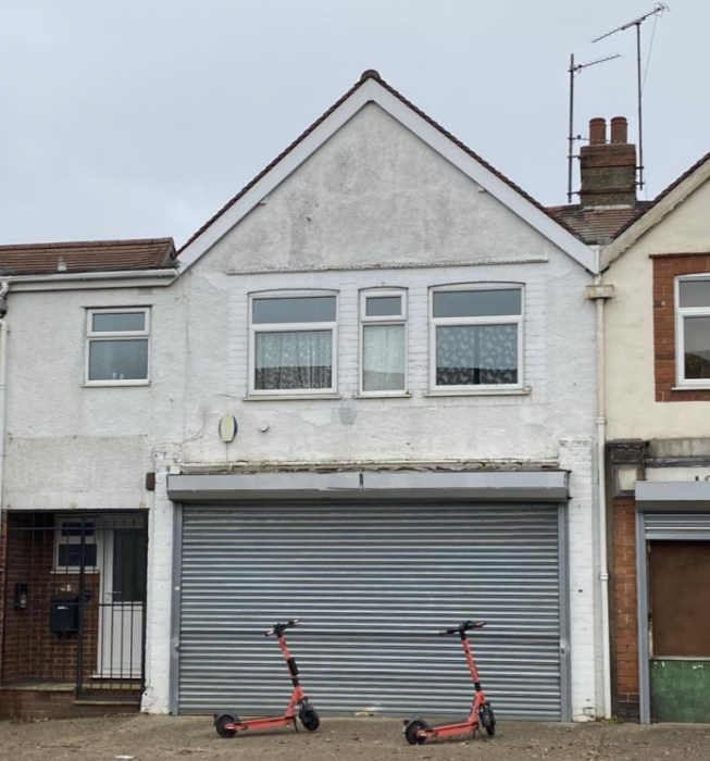 The ground floor retail unit benefits from a large, glazed display with a large electric roller shutter.